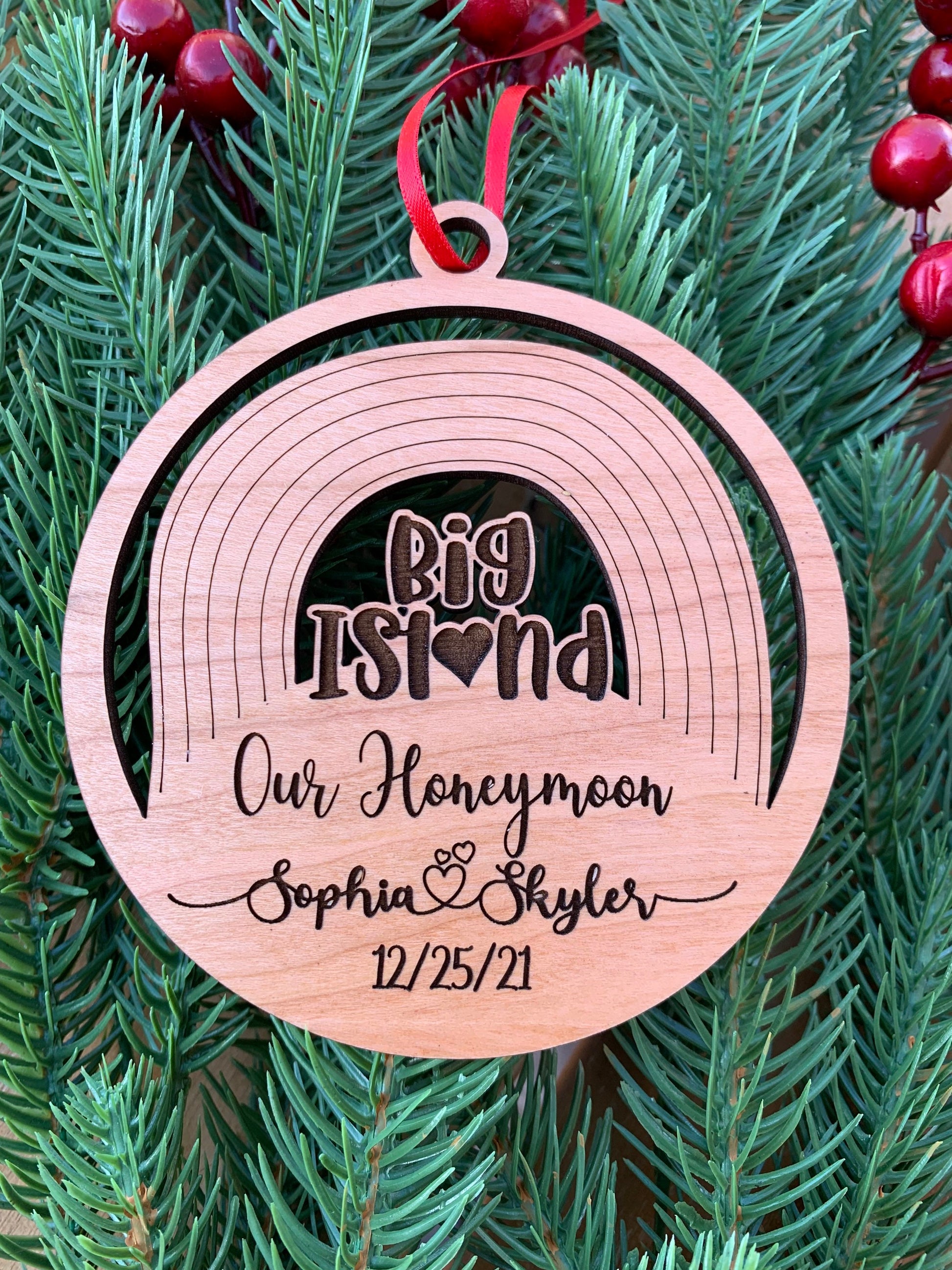 Personalized Our Honeymoon - Hawaiian Islands Ornament - Choice of Maple, Cherry, or Walnut Personalized