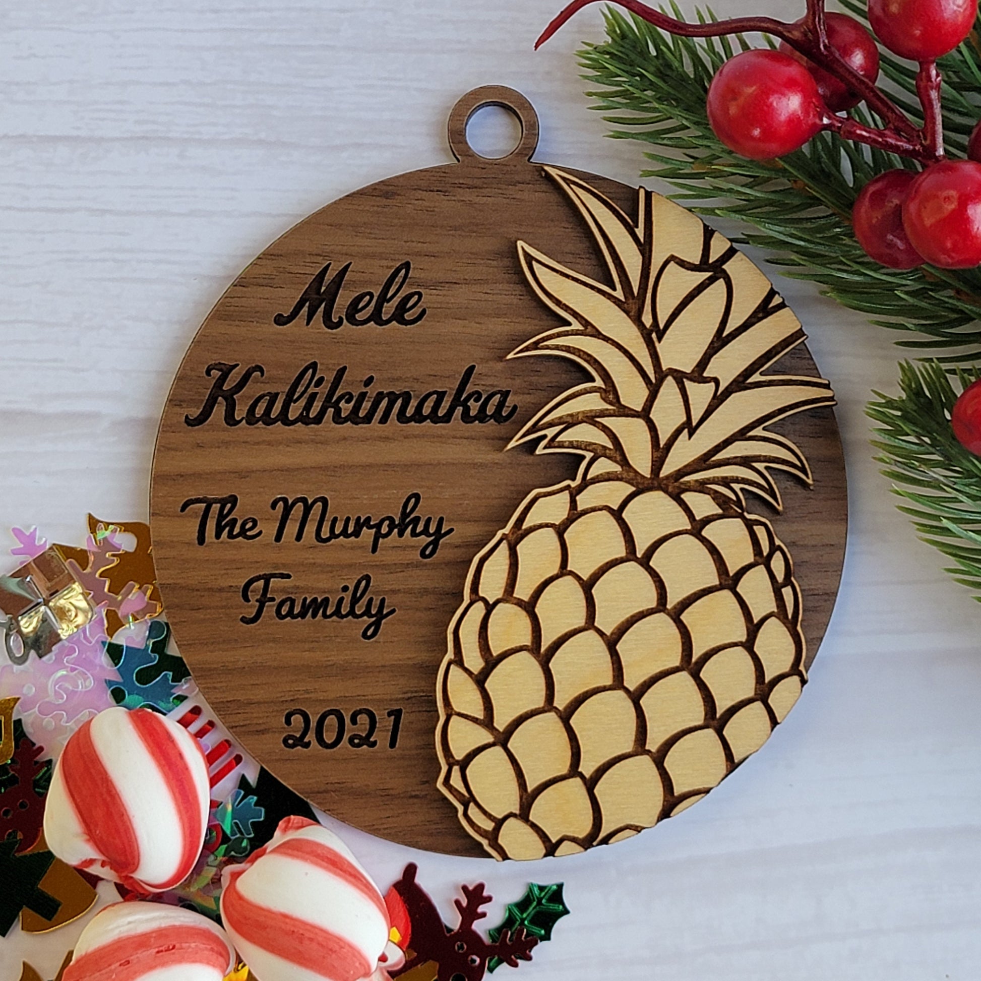 Personalized Pineapple with Walnut Background - Christmas Ornament - Hawaii